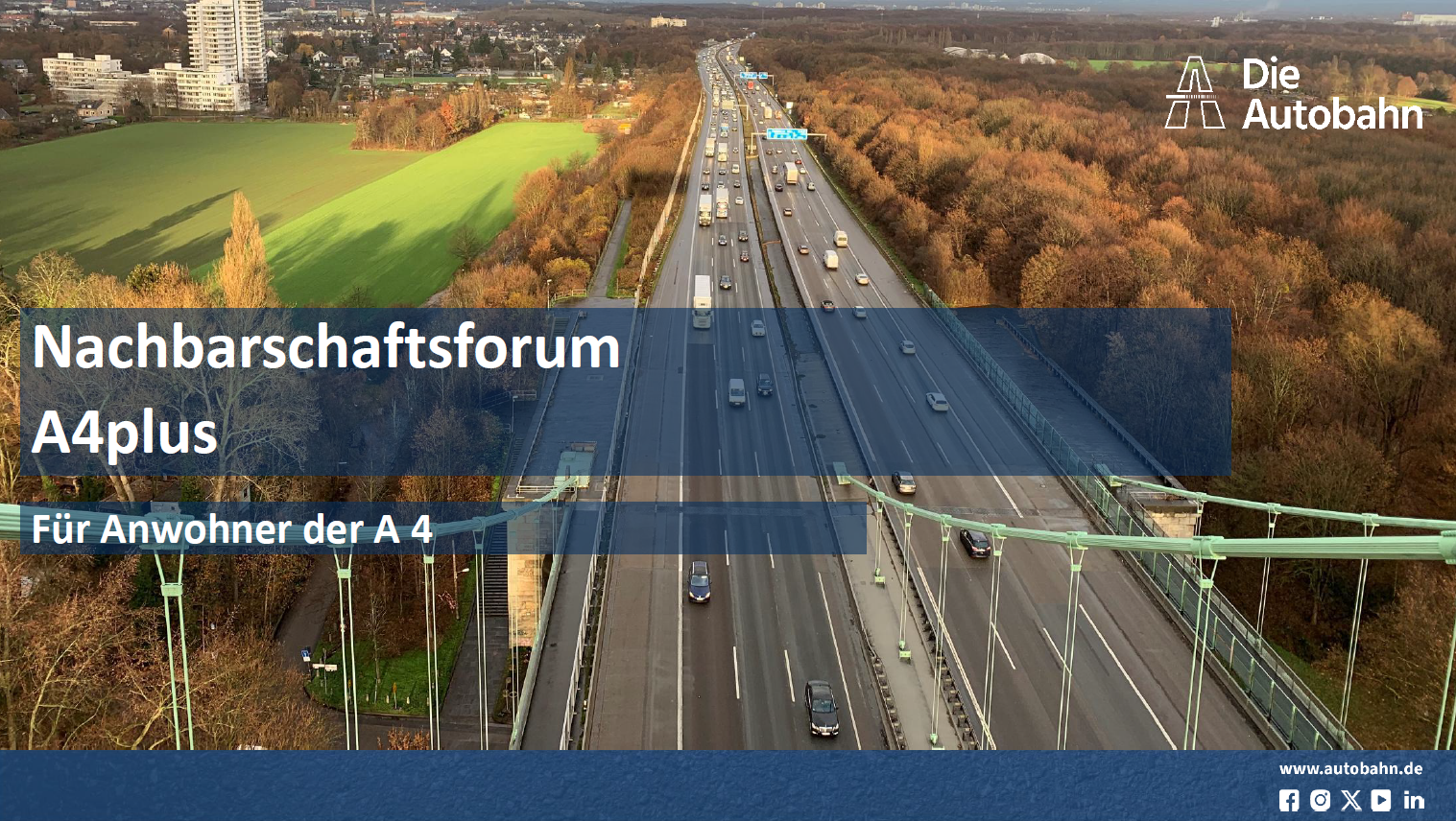 Das Projekt A4plus umfasst den Ausbau der A4 zwischen den Autobahnkreuzen Köln-Süd und Köln-Gremberg. In dieser Präsentation möchten wir Ihnen das Projekt vorstellen und dabei insbesondere auf die Information und Beteiligung der Öffentlichkeit eingehen. Alle Informationen haben den Stand März 2020.